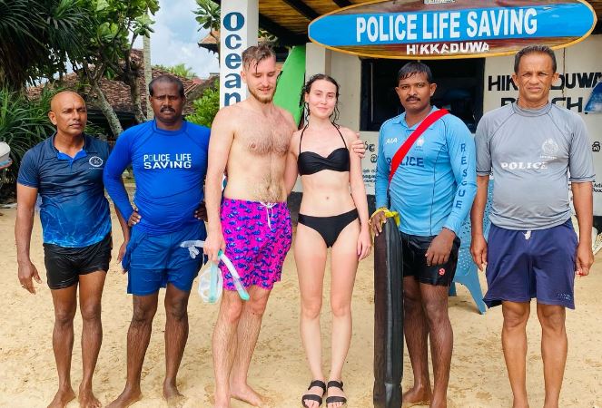 හික්කඩුව මුහුදේ ගසාගෙන යමින් සිටි විදෙස් කාන්තාවක් බේරා ගනී