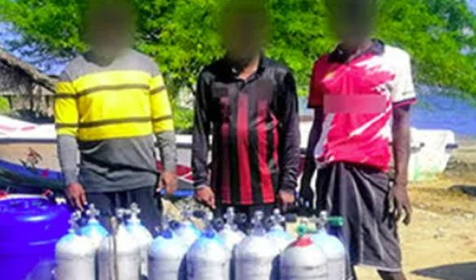 පුපුරන ද්රව්ය භාවිත කරමින් මසුන් ඇල්ලූ තිදෙනෙකු නාවික හමුදා භාරයට