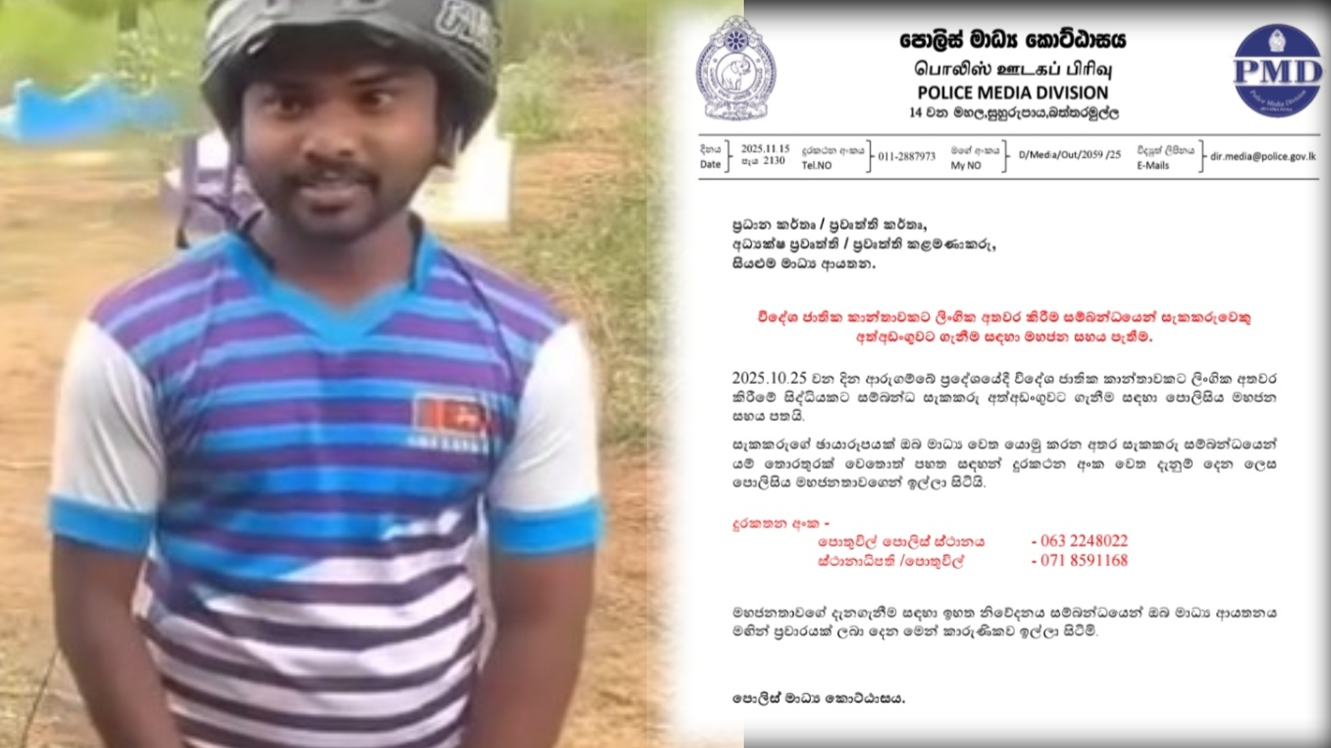 විදෙස් කතට ලිංගික අතවර කිරීමට තැත් කළ සැකකරු හඳුනා ගැනීමට පොලීසිය මහජන සහාය පතයි
